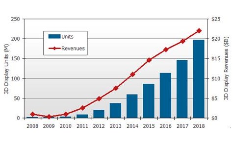 隨著3D電影的日趨風靡,在家電廠商紛紛推出3D液晶電視以后。顯示器也逐漸呈現出了3D趨勢。裸眼3D顯示器由于設計層面較為復雜,導致單價較高(目前售價比普通顯示器高2倍左右)所以目前應用在顯示器領域的主流3D技術主要是帶眼睛的偏光式3D技術與快門式3D技術兩種。有數據表明,雖然目前3D顯示器所占的市場份額還不算很高,但是隨著產品價格下降以及片源問題的解決,在未來幾年內,3D顯示器在市場占有率方面會有明顯的上升并最終成為市場的主流。