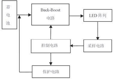 圖2 可知,Buck-Boost 電路將蓄電池電能變換后對LED 陣列供電,采樣電路對流過LED 的電流采樣,將信號傳到控制電路。控制電路分析采樣信息,調節(jié)Buck-Boost 電路中開關管的占空比,保證通過LED 電流恒定;當電路出現(xiàn)異常時,通過控制保護電路切斷電源,保證LED 不受損害。一般情況下,LED 驅動電路必須滿足下列要求:
