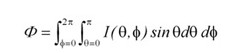 藉由量測光強度分布I(θ,Φ)如圖9所示,光通量可由公式(4)求得。若以亮度探頭量測照度值E(θ,Φ)進行校正,光通亮的計算方式可由公式(5)計算出來。其中γ為相對于亮度探頭參考平面的旋轉半徑。量測光強度時,γ須要有足夠的長度。