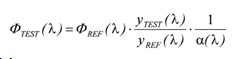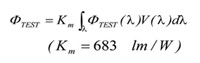 此類系統必須參照一個有校準到全可見光域分光輻射通量標準燈來進行校正。其量測原理為通過與參照標準ΦREF (λ)比較,可得到被測固態照明產品的總分光輻射通量ΦTEST (λ),關系式如公式(1)。