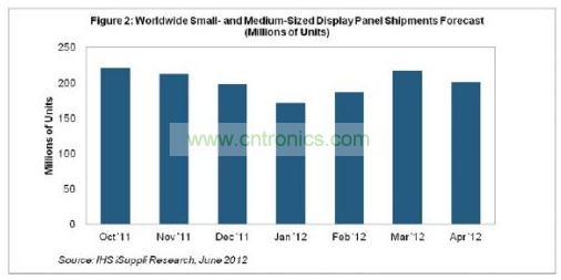4月出貨量下降似乎預示第二季度前景疲軟,不太符合先前的預期。這是因為許多使用SMD的OEM廠商正在為新產品做準備,尤其是智能手機和平板電腦,這些新產品計劃在今年第三季度或者下半年推出。在接近第二季度結束的時候,面向新設計的面板可能向市場大量出貨,主要是在第三季度,屆時將推高出貨量數字。