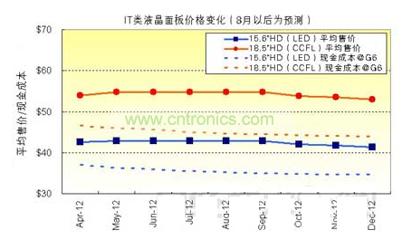 圖1:IT類液晶面板價格變化(8月以后為預(yù)測)