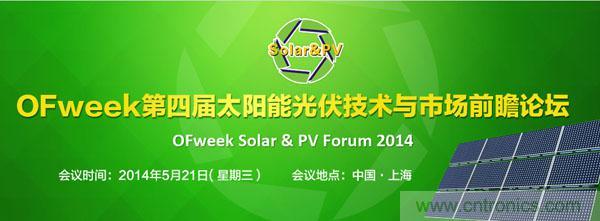 2014年5月21日,由OFweek主辦、OFweek太陽能光伏網承辦的“OFweek Solar & PV Forum 2014太陽能光伏技術與市場前瞻論壇”將在上海隆重舉行。本次峰會擬邀請杜邦、MANZ、特變、山億新能源等知名企業專家、高層,以及政策決策機構、行業組織機構嘉賓主講太陽能電池轉換效率的技術、CIGS薄膜電池技術與投資、光伏電站項目投資收益率(IRR)等重大議題。同時OFweek行業研究中心太陽能光伏領域分析師團隊針對2014年中國光伏電站領域的建設熱點和投資機會共同組織本次論壇,給業界及希望在光伏領域尋找新機會的投資方以明確的分析和投資指南。