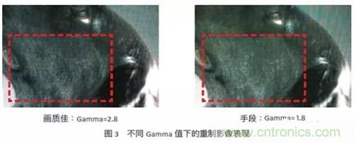 如果不采用提高LED順向電流的方式來(lái)掩蓋上述的缺點(diǎn),另一種手段就是調(diào)整小點(diǎn)間距LED顯示屏的gamma曲線,灰階的亮度對(duì)于正確的影像重制是非常重要,因?yàn)樵谝曈嵲粗辛炼劝舜蟛糠莓?huà)面數(shù)據(jù)。如圖3,右邊的圖像gamma值較小,代表中間色調(diào)的亮度太高,因此,整體畫(huà)面刷白又缺少深度,圖像上的細(xì)節(jié)損失不少,相較于左圖,右圖中的狗毛沒(méi)有那么有層次。