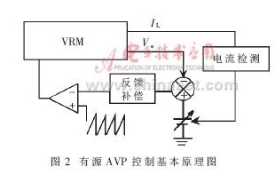 隨著VRM的深入發(fā)展,為滿足低電壓、大電流的需要,相繼提出了各種電路拓?fù)洌鐜С轭^電感的BUCK電路、有源鉗位的BUCK電路、耦合繞組的BUCK電路、移相軟開關(guān)BUCK電路等;并有優(yōu)良的控制方法問世,如V2控制、滯回控制等。以上的這些方法都甚是難以滿足電源模塊的發(fā)展需要。AVP的控制方法在適當(dāng)降低負(fù)載調(diào)整率的情況下有效地改善了模塊的動(dòng)態(tài)響應(yīng),在低電壓、大電流的應(yīng)用場(chǎng)合中被人們重新認(rèn)識(shí)。本文對(duì)其從理論方法進(jìn)行分析,并采用新的檢測(cè)方法通過實(shí)驗(yàn)證明了AVP良好的動(dòng)態(tài)調(diào)節(jié)能力。
