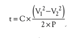 其中V1和V2分別為最初和最終的電壓,U為能量。另外,U=P×t,其中P為功率,t為時間。利用這些等式,可以求出設(shè)備保持正常工作的時間: