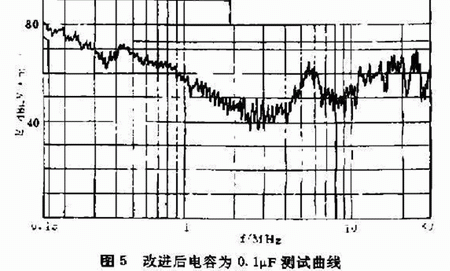 從測試圖4和圖5中能很清楚地看出測試結果。不合格的為選用0.OμF的電容濾波,改進后選用0.1μF的電容濾波測試結果臺格。濾波器的安裝質量同樣對衰減特性影響很大,只有把濾波器正確地安裝到UPS不間斷電源上,才能獲得預期的衰減特性.