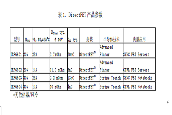表1. DirectFET產(chǎn)品參數(shù)