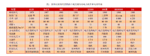 [page]20世紀70年代以來,電力電子學和微電子技術的出現和進步,又重新喚起人們對交流傳動系統的熱情。自1971年世界首臺采用異步交流傳動系統的內燃機車DE2500問世以來,交流傳動系統以其突出的優越性受到了各國鐵路運輸部門的關注,獲得了長足的發展,并已基本取代了直流傳動系統。與直流傳動機車相比,交流傳動具有無可比擬的優越性,這已經在各國鐵路運輸系統中得到了廣泛的驗證。交流傳動所用的三相交流異步電動機比直流電動機的功率/體積比和功率/重量比更大,無需經常維護,故障率低。異步電動機的恒功率區比直流電動機大許多,轉速更高,起動牽引力大,持續功率大,有利于實現重載和高速牽引。交流傳動可以很容易地實現電氣制動,大大減少制動閘瓦的消耗,并可以利用制動時反饋的能量,起到節能節油的作用,經濟效益顯著。另外,交流傳動機車的一個突出的優點在于其優良的粘著特性,由于異步交流電動機變頻調速系統具有很硬的機械特性,車輪更不容易打滑或者空轉。其次,交流傳動電力機車牽引和再生工況的功率因數均接近于1,不僅降低了電網損耗而且在再生制動時可將高質量電能反饋給電網,消除了電網對信號和通信系統的干擾。再者,機車采用交流牽引電動機后,簧下重量大大減輕,改善了輪軌動力學性能,降低了機車輪緣磨耗。隨著磁場定向矢量控制和直接轉矩控制等高性能異步電動機控制策略的應用,交流傳動機車的調速性能已經能夠達到甚至超過直流傳動機車。表1是國外比較有代表性的使用交流傳動的電力機車和電動車組。