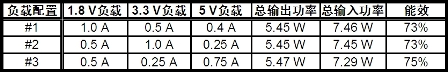 由于此款設計的主要目標是效率和電路簡單性,而且特定DTA電路應用所需的電壓和電流配置也會明顯不同,所以我們在多種不同負載條件下測試了能效,結果如表2所示。如我們可能預計的那樣,5 V輸出上負載最大的配置總能效也最高。