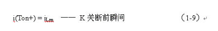 式中i(Ton+)為控制開(kāi)關(guān)K從Ton轉(zhuǎn)換到Toff的瞬間之前流過(guò)電感的電流,i(Ton+)也可以寫(xiě)為i(Toff-),即:控制開(kāi)關(guān)K關(guān)斷或接通瞬間,之前和之后流過(guò)電感L的電流相等。實(shí)際上(1-8)式中的i(Ton+)就是(1-6)式中的iLm,即: