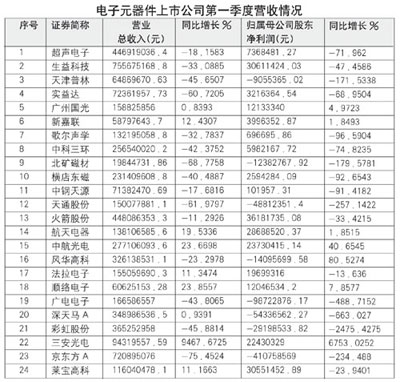 在50多家上市元件公司中,大多數公司第一季度財報中的營業收入都是負增長。很多公司在業績報告中說明,出現這種狀況的原因是:國際金融危機影響,全球電子信息產業持續低迷,整機市場需求下降,產品價格持續下跌。財報顯示,電子元件公司從2008年末起銷售收入明顯減少,2009年第一季度后期雖略有好轉,但整體形勢仍然嚴峻。作為產業鏈上游的元件公司第一季度產能利用率嚴重不足,銷售收入和產品利潤率同比下降。