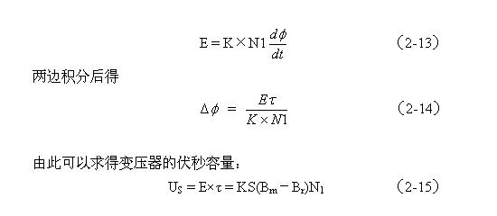 上面(2-13)、(2-14)、(2-15)式中,US為變壓器的伏秒容量,US = E×τ ,即:伏秒容量等于輸入脈沖電壓幅度與脈沖寬度的乘積,單位為伏秒,E為輸入脈沖電壓的幅度,單位為伏,τ為脈沖寬度,單位為秒;Δ