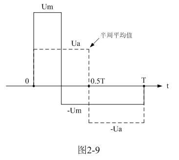 這種計算方法,對于非正弦波同樣有效。圖2-9是一個正、負脈沖幅度以及脈沖寬度均不相等的交流脈沖波形,我們同樣可以用分別計算它們正、負半周平均值Ua、-Ua的方法,然后用平均值Ua替代(2-17)或(2-18)式中的矩形脈沖幅度E 。