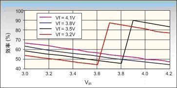 圖5 400mA閃光模式效率(Cin=2.2?F,CFC=0.47?F,Cout=1.0?F)