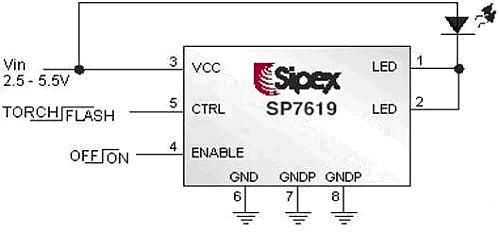 手機Flash LED驅(qū)動方案的基本要求就是體積小、效率高。Sipex公司一系列的電流型Flash LED驅(qū)動器件,外圍元件少,可以提供極小面積的整體解決方案,同時主要采用DFN這種熱性能良好的封裝,非常適合手機這種空間極為有限的應(yīng)用場合。