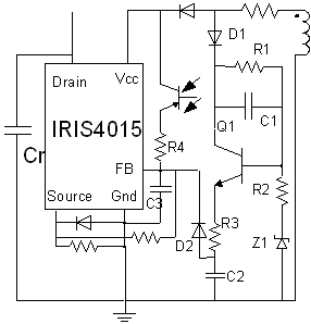 圖4由IRIS4015構(gòu)成的QR/PWM反激式電源電路