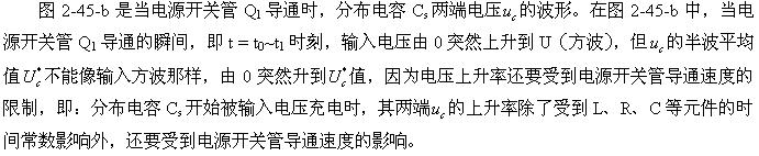 這里順便指出,圖2-45-b的波形是很難測量到的,因為它基本上都在變壓器內部的分布電感Ls與分布電容Cs之間產生,但它會通過輻射對周邊電路造成干擾。