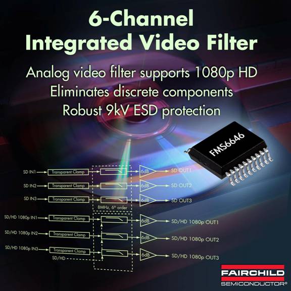 飛兆半導(dǎo)體 (Fairchild Semiconductor) 為高清 (HD) 液晶電視、藍(lán)光DVD播放器和 HD 機(jī)頂盒設(shè)計(jì)人員提供業(yè)界首款具有1080p高清能力的6通道集成視頻濾波器。新器件能夠同時(shí)支持三個(gè)在75MHz下進(jìn)行濾波的1080p高清通道,以及三個(gè)在8MHz下進(jìn)行濾波的標(biāo)清 (SD) 通道。這款6通道視頻濾波器還提供非常穩(wěn)健的9kV ESD保護(hù)功能,能夠保護(hù)設(shè)備避免因靜態(tài)放電而導(dǎo)致?lián)p壞,并可省去分立式保護(hù)器件。FMS6646是業(yè)界最廣泛的視頻濾波器產(chǎn)品系列的成員,是飛兆半導(dǎo)體支持1080p高清標(biāo)準(zhǔn)之視頻濾波器系列的第二款器件。