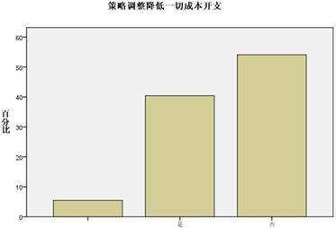 調(diào)查顯示,在危機影響中,企業(yè)做出了降低一切成本開支,重新調(diào)整供應(yīng)商、加大市場開發(fā)力度,調(diào)整客戶群,抓住國家內(nèi)需政策等一系列戰(zhàn)略性政策調(diào)整,其中,企業(yè)本身的調(diào)整降低一切成本開支和加大市場開發(fā)力度成為最重要部分,分別占40.4%和54.8,正所謂內(nèi)因決定外因,從主要矛盾出發(fā)。而在外因當(dāng)中,在重新挑選供應(yīng)商、調(diào)整客戶群和抓住國家內(nèi)需政策上,企業(yè)的選擇比例分別是15.1%,36.3和30.1%。(如下列組圖所示)