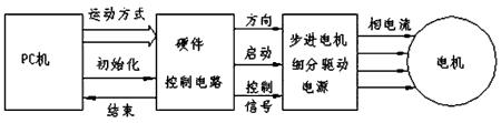 PC機在適當的時刻通過對硬件控制電路上的8253計數器0賦初值,設置好加減速過程的頻率變化(即速度、加速度變化),以防止失步。例如,在點位控制中設置好速度曲線圖,在起動和升速時,使步進電機產生足夠的轉矩驅動負載,跟上規定的速度和加速度;在減速時,下降特性使負載不產生過沖,停止在規定的位置。硬件控制電路板上的8253產生脈沖方波作為中斷信號源,啟動細分驅動電路中的固化程序以產生一定頻率的脈沖,經功率放大后驅動步進電機運動。步進電機運動方向的改變及啟動和停止均由計算機控制硬件控制電路實現。