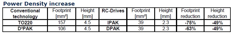 從功率密度來說如果選用這種小封裝的IPARK產品去取代TO220封裝的話,面積可以減少75%,高度可以減少49%。而用這種DPARK封裝產品的話,如果去取代D2PARK這種產品,它的面積可以減少63%,高度同樣可以減少到49%。