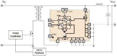 用來調整次級電壓的二極管通常由MOSFET代替,該模塊包含了柵極驅動器和功率MOSFET,采用外引腳極寬的小型單列直插封裝,可減小寄生電感和電阻。