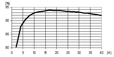 40A的數(shù)字設(shè)計專為大電流作了優(yōu)化,這反映在圖5中15-30A范圍內(nèi)的效率性能曲線上。當(dāng)輸出電流低于10A時,它包括了18A模擬設(shè)計的可用工作范圍的絕大部分,其效率要比模擬POL穩(wěn)壓器略微低一些,這是由于較高的開關(guān)損耗所致。但在半負(fù)載點上(20A),其效率達到93.7%,比相同輸出電流的模擬設(shè)計提高了2.4%。即便是在40A的滿負(fù)載點上,效率仍達91.9%,也比相應(yīng)的模擬POL穩(wěn)壓器高0.6%。故在所有關(guān)注的設(shè)計范圍內(nèi),40A數(shù)字設(shè)計的效率也優(yōu)于模擬設(shè)計。改善的原因歸結(jié)于所采用的元器件數(shù)量與20A設(shè)計一樣多。而當(dāng)輸入電壓為9.6V時,40A設(shè)計的效率也能夠再提高1%。