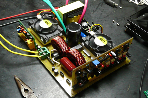 我在裝這臺樣機時,曾遇到過300W以下一切正常,加到300W以上,H橋管子就有一個燒掉,也曾請朋友幫我診斷和查找原因,后來是加強了高壓直流和SPWM板電源的濾波就一切正常了