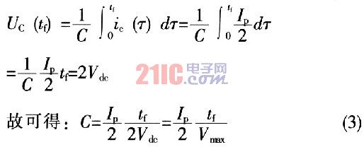 事實上,當Q開始關(guān)斷時,假設(shè)最初的峰值電流Ip的一半流過C,另一半仍然流過逐漸關(guān)斷的Q集電極,同時假設(shè)變壓器中的漏感保持總電流仍然為Ip。那么,通過選擇合適的電容C,以使開關(guān)管集電極電壓在時間tf內(nèi)上升到2Vdc(其中tf為集電極電流從初始值下降到零的時間,可以從開關(guān)管數(shù)據(jù)手冊上查詢),則有: