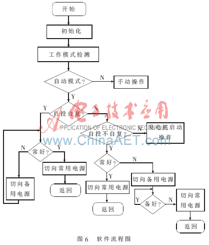 在手動模式下,電源不能自動切換而需要人為操作,主要有常用電源供電、備用電源供電和斷電再扣方式。