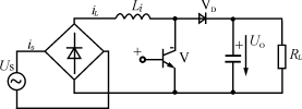 開關(guān)電源的功率因數(shù)校正器(PFC)可分為兩類,一類為有源PFC,由電感電容及電子元器件組成;另一類為無源PFC,一般采用電感補償方法使交流輸入的基波電流與電壓之間相位差減小來提高功率因數(shù)。在校正電路中有源PFC較多采用高頻升壓電路功率因數(shù)開關(guān)調(diào)節(jié)器,通常采用Boost電路,基本電路拓樸見圖1。