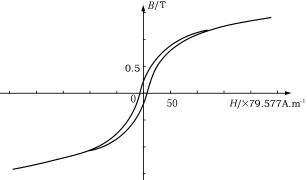 圖4μe=75鐵粉心的B-H曲線