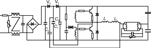 圖1采用無源濾波的電子鎮流器電路