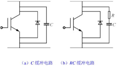 (2)RC緩沖電路如圖4(b)所示,其特點(diǎn)是適合于斬波電路,但在使用大容量IGBT時(shí),必須使緩沖電阻值增大,否則,開通時(shí)集電極電流過大,使IGBT功能受到一定限制。