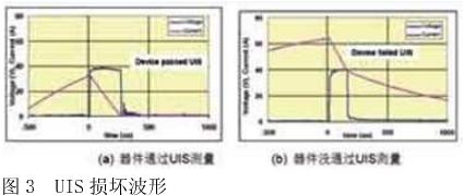 圖3顯示了UIS工作條件下,器件雪崩損壞以及器件沒有損壞的狀態。