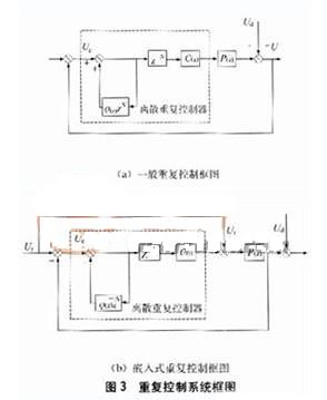 逆變器采用重復控制(repetitive control)是為了克服整流型非線性負載引起的輸出波形周期性的畸變,它通常與其他PWM控制方式相結合。重復控制的思想是假定前一周期出現的基波波形將在下一基波周期的同一時間重復出現,控制器根據給定信號和反饋信號的誤差來確定所需的校正信號,然后在下一個基波周期的同一時間將此信號疊加到原控制信號上,以消除后面各周期中將出現的重復畸變。