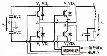 在電壓型逆變電路的PWM控制中,同一相上下兩個橋臂的驅(qū)動信號都是互補(bǔ)的。但由于IGBT的截止時間約為200多納秒,導(dǎo)通時間約為100多納秒,開通速度比關(guān)斷速度快。如果在一個IGBT截止的同時讓此橋臂的另一個IGBT導(dǎo)通,將會出現(xiàn)上下兩個橋臂直通而短路的現(xiàn)象。為了防止發(fā)生這一現(xiàn)象,必須在開通和關(guān)斷信號之間設(shè)置一個死區(qū)時間,因而理想的調(diào)制信號和開關(guān)管輸出的實際信號之間存在偏差。死區(qū)時間的存在導(dǎo)致輸出電壓波形產(chǎn)生畸變,降低了基波幅值,增加了負(fù)載的諧波損耗。