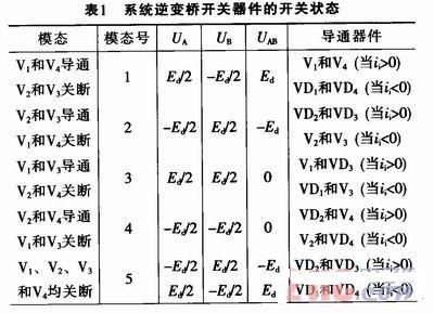 通過比較可知,因為續(xù)流的緣故,死區(qū)時間內(nèi)A、B點的電位不再為零。當(dāng)i>0時,VD2、VD3續(xù)流形成回路,A端電位UA為-Ed/2,B端電位UB為+Ed/2;當(dāng)i<0時,VD1、VD4續(xù)流形成回路,A端電位UA為+Ed/2,B端電位UB為-Ed/2。