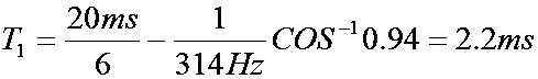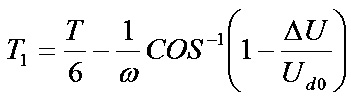 式中,Id為輸入電流125A;△U為電壓變化量(△U =Ud0×10%=54V);T1為電容放電時間; Ud0為空載直流電壓540V;T為工頻交流電周期20ms;為工頻交流電角頻率),可得: