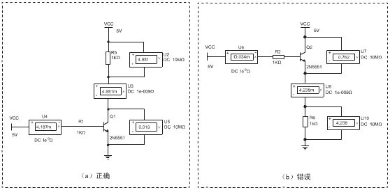 初學者使用晶體管驅(qū)動負載時,有時會錯誤地把負載接在晶體管發(fā)射極一端,如圖3(b)所示,這樣做負載上得到的功率會比較小。我們可以通過仿真來分析。