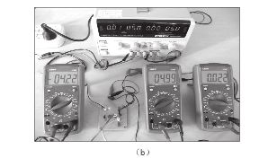 圖4(a)是晶體管測試電路板的原理圖,圖4(b)是晶體管測試電路的實物連接圖,左側(cè)的電流表顯示電路的基極電流Ib,中間的電流表顯示集電極電流Ic 或發(fā)射極電流Ie,右側(cè)電壓表顯示晶體管集電極和發(fā)射極之間電壓Uce。實驗測得的數(shù)據(jù)如表3 所示。