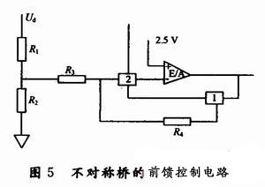 Buck控制采用了最大占空比為100%的UC3842芯片,不對稱橋控制采用了最大占空比為50%的UC3844芯片。同時兩級電路都采用電壓型的控制。不對稱橋采用的是前饋控制,當輸入的電壓有波動時,占空比能夠相應調整,以保證前級的輸出基本不變,如圖5所示。