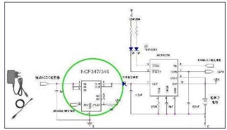圖5:集成式OVP解決方案NCP348的應用電路示意圖。