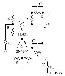 反饋控制回路采用了峰值電流控制。相比傳統(tǒng)的電壓控制,峰值電流控制一方面能很好的改善電源的動態(tài)響應,另一方面還能實現快速的過電流保護,很大程度上提高了系統(tǒng)的可靠性。由于采用了電源控制器LT1935,其內部集成了峰值電路控制電路和斜坡補償電路,非隔離負電壓DC/DC開關電源反饋回路設計即轉換為補償網絡設計,進而大大簡化了反饋回路的設計。