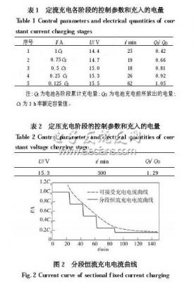 增大充電電流,電池極板上單位時(shí)間內(nèi)恢復(fù)的活性物質(zhì)增多,充電時(shí)間就可縮短,但過大的充電電流會(huì)損害電池。電池可接受的充電電流是有限的,且會(huì)隨充電時(shí)間呈指數(shù)規(guī)律下降。在電池充電過程中,充電電流曲線在該指數(shù)函數(shù)曲線以上時(shí)會(huì)導(dǎo)致電池電解液發(fā)生析氣反應(yīng)(過充電) ,反之則不能有效縮短充電時(shí)間。理想化的電池快速充電過程是充電電流始終保持在電池充電可接受電流的極限值,即充電電流曲線與該電池的充電可接受電流曲線相重合。本文選擇容易實(shí)現(xiàn)的分段恒流充電方法,其關(guān)鍵是要確定適當(dāng)?shù)碾A段恒流充電終止判斷標(biāo)準(zhǔn)、恒流充電分段數(shù)和各階段恒流充電電流值。