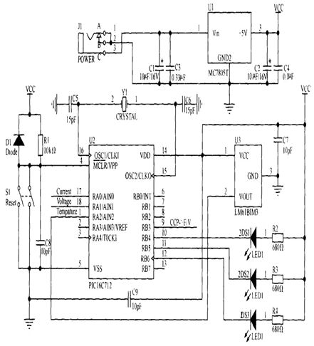 因此,設(shè)計良好的充電器應(yīng)具有溫度檢測功能并能夠根據(jù)不同的環(huán)境溫度調(diào)整充電過程中的各轉(zhuǎn)換電壓值;同時,充電器還應(yīng)具備溫度保護功能,在充電過程中,當(dāng)蓄電池溫度超出限定的溫度范圍時充電器應(yīng)立即停止充電或進入涓流充電,并且PIC16C712應(yīng)點亮故障指示燈以提示用戶出現(xiàn)何種異常。