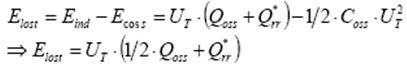然后,這些電量將被轉移至MOSFET的輸出電容(圖4),并在此產生過電壓尖峰,繼而,這些電量將被LC振蕩電路的電阻部分消耗(圖1,點6)。于是,可以得出關斷過程中的功耗: