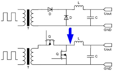 隨便看一個開關電源,你都可以在電源轉換器的二次側發現一個整流級。整流級的任務是對經由變壓器從SMPS的一次側轉移至二次側的方波電源信號進行整流。SMPS通常利用功率二極管來實現整流(請參見圖1)。但是,功率二極管具有0.5 V乃至更高的正向壓降,并且會產生較高輸出電流,因此會造成嚴重的導通損耗,從而大大影響整個電源轉換器的能效。為了最大限度地降低這些整流損耗,可以利用最新功率MOSFET來代替二極管。最新的功率MOSFET能夠大幅降低導通損耗,特別是在輸出電流較高的情況下。在考慮低負載效率時,關注的焦點不是導通損耗,而是開關損耗。因為相比于二極管,MOSFET的開關損耗高得多。對系統能效的其他重要影響來自柵極驅動和旨在遏制關斷過程中的過電壓尖峰的緩沖網絡。這是一個十分復雜的系統,因此,必須深刻理解所有參數相互之間的關系,才能優化系統能效。