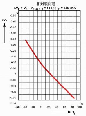圖1 順向電壓隨接面溫度升高而下降